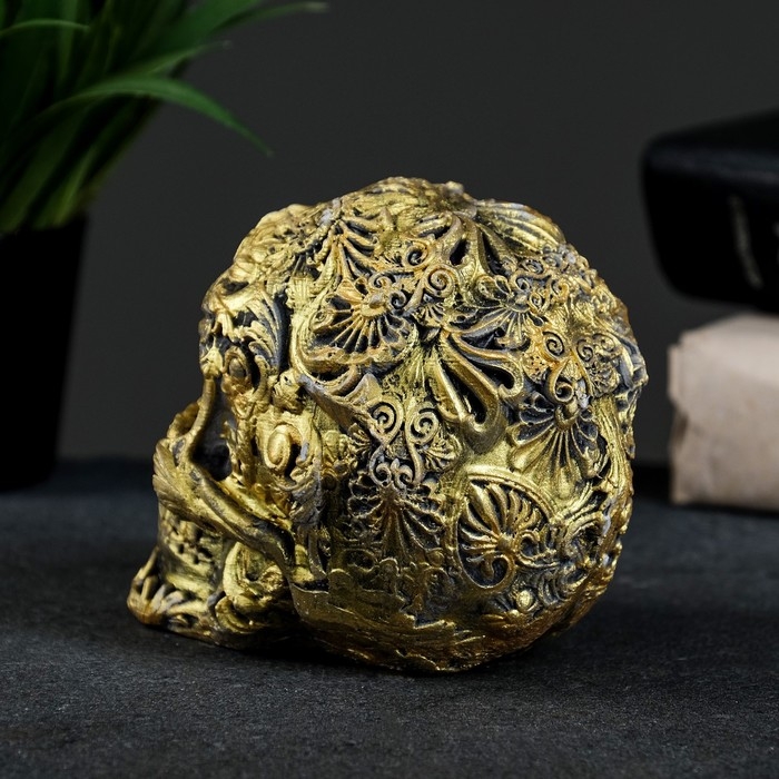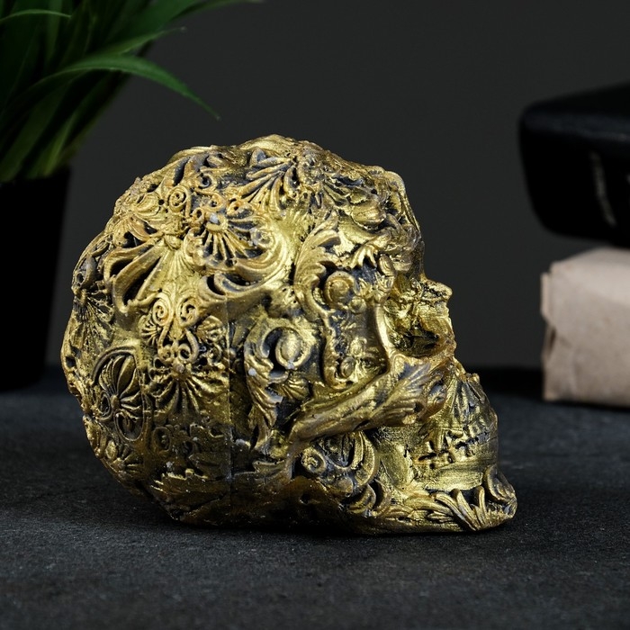 Фигура "Череп цветной" состаренное золото 10х12х8см