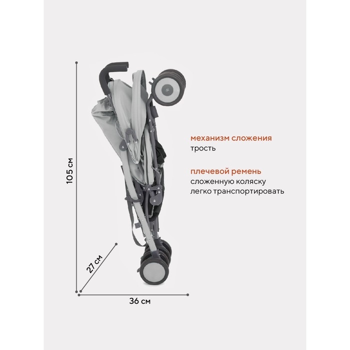 - модель дополнена плечевым ремнем - сложенную коляску легко транспортировать с места на место
