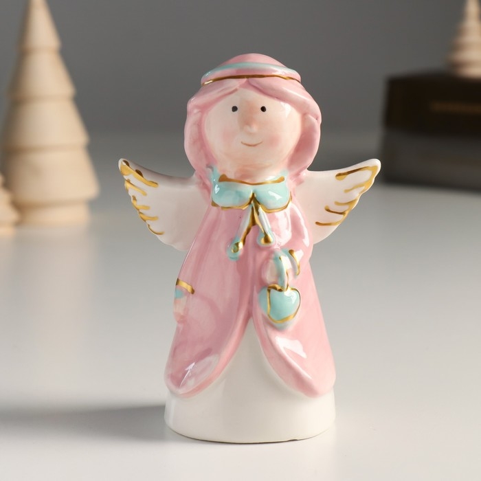 Сувенир керамика "Девочка-ангел в розовой накидке, с сердечком" 11,2х7,8х5,1 см