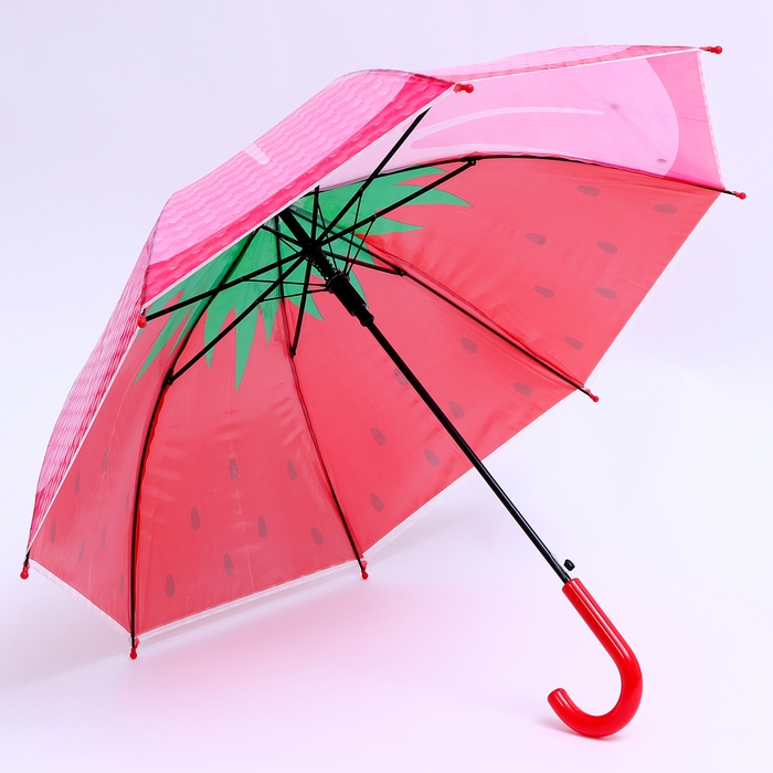 Детский зонт п/авт «Ягодный принт Клубника» d = 84 см, R = 42 см, 8 спиц, 68 × 10 × 8 см