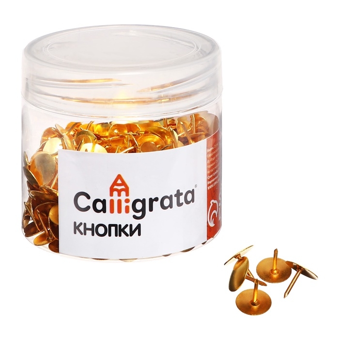 Кнопки канцелярские 12 мм, 300 штук, золотистые, в пластиковой тубе