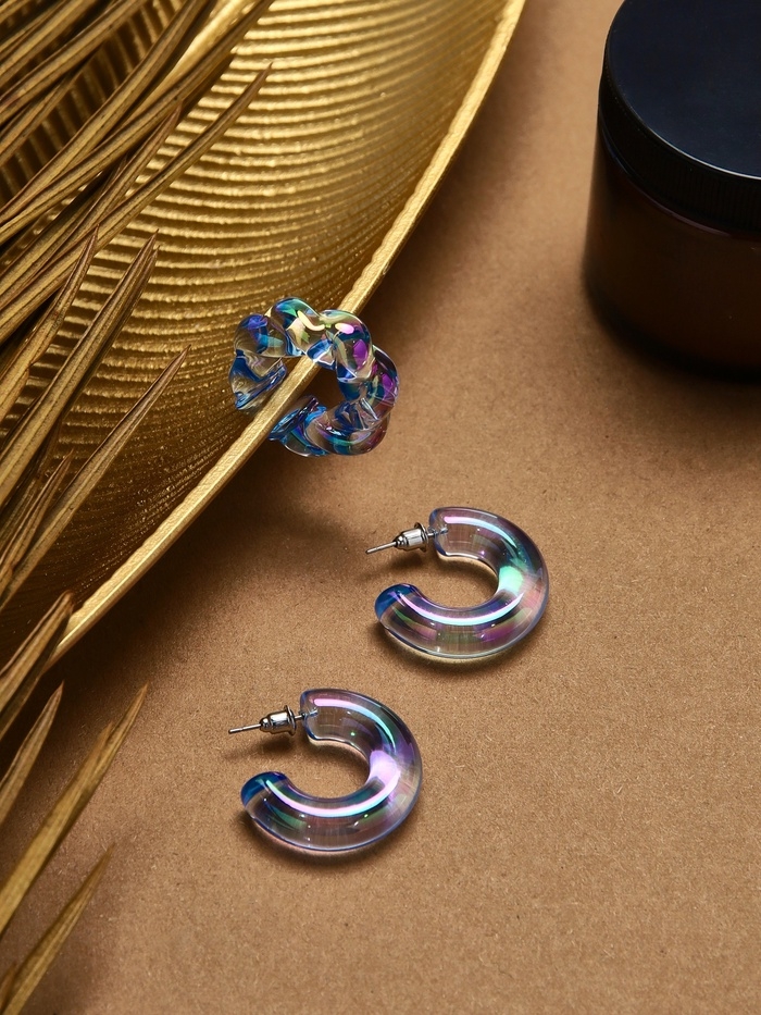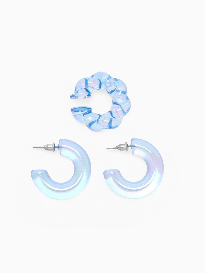 Набор серьги и каффы 3 шт «Нежность» косичка, цвет голубой в серебре
