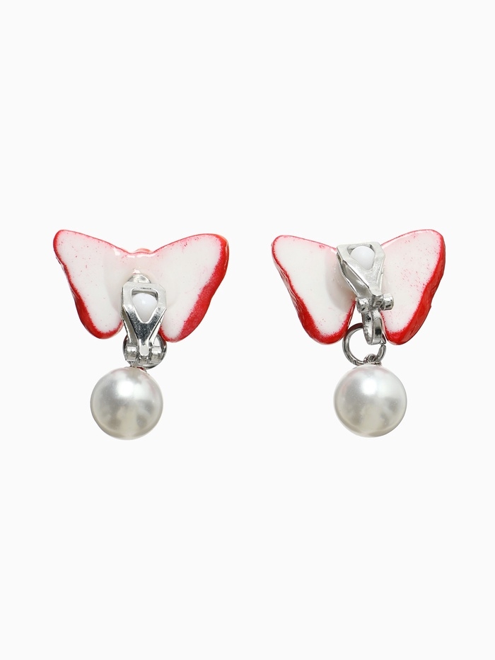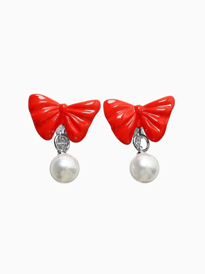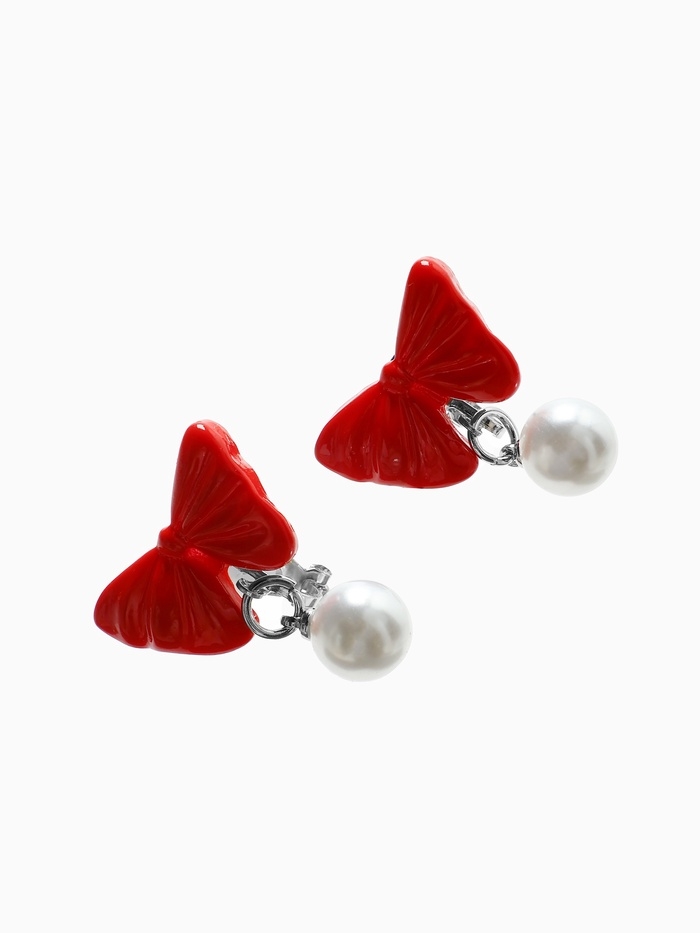 Серьги-клипсы детские "Выбражулька" бант с жемчужиной, цвет красно-белый