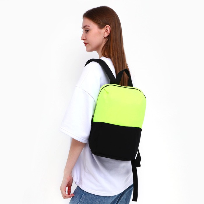 Рюкзак школьный текстильный с карманом, цвет жёлтый/чёрный, 22х13х30 см