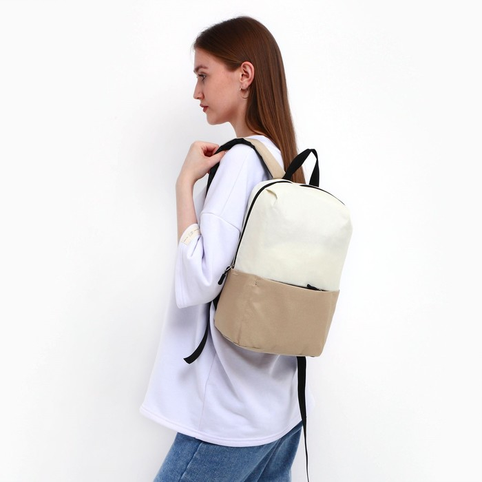 Рюкзак школьный, отдел на молнии, наружный карман, цвет бежевый