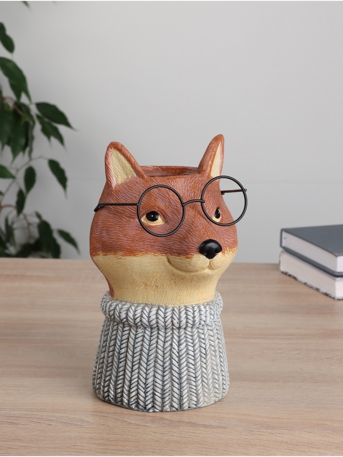 Ваза керамика настольная "Лиса в очках" 14х14х22 см
