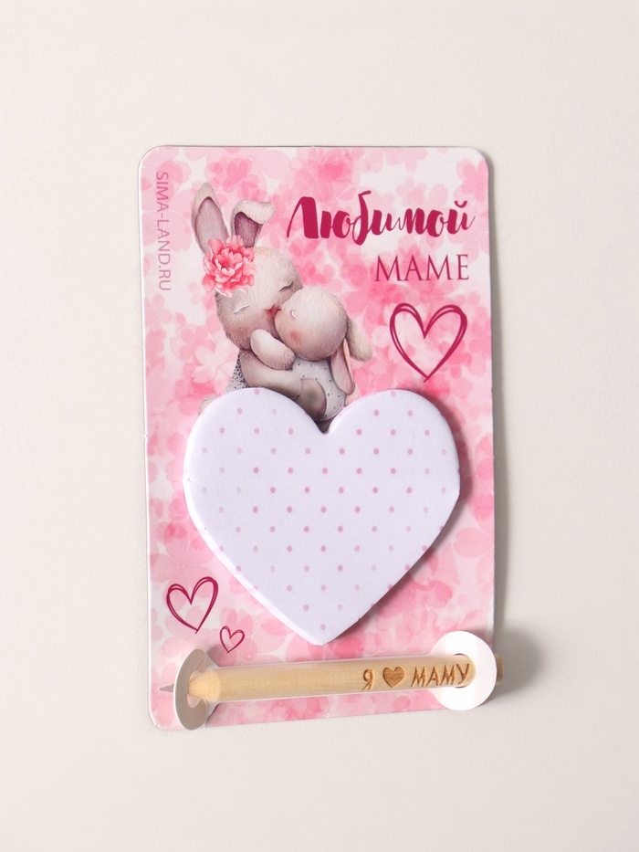 Магнит с блоком для записей и карандашом "Я ♥ маму" 9х13 см