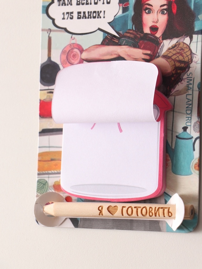 Магнит с блоком для записей и карандашом "Я ♥ готовить" 9х13 см