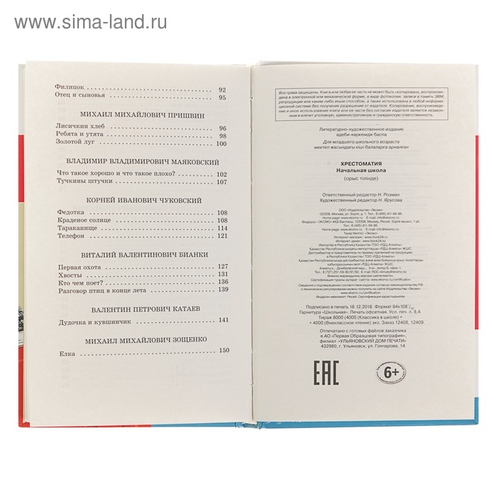 Хрестоматия «Начальная школа. 1», Пушкин А. С., Толстой Л. Н., Чуковский К. И.