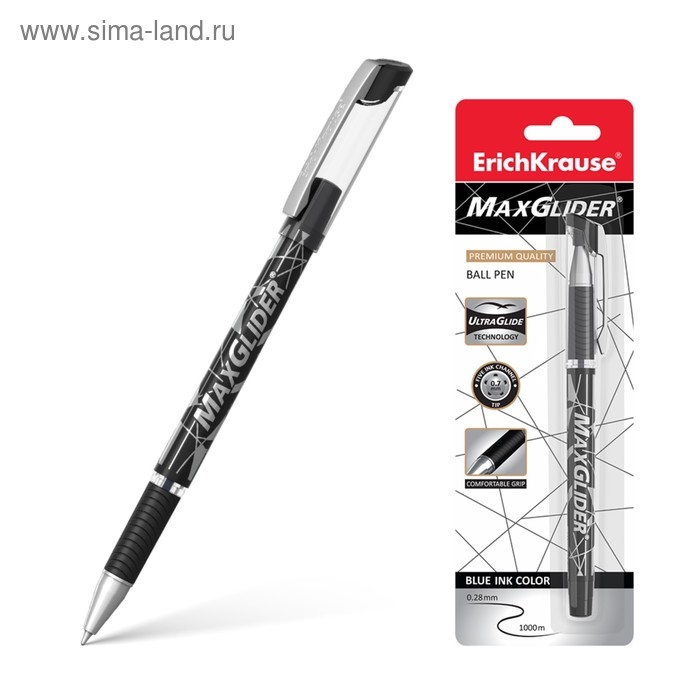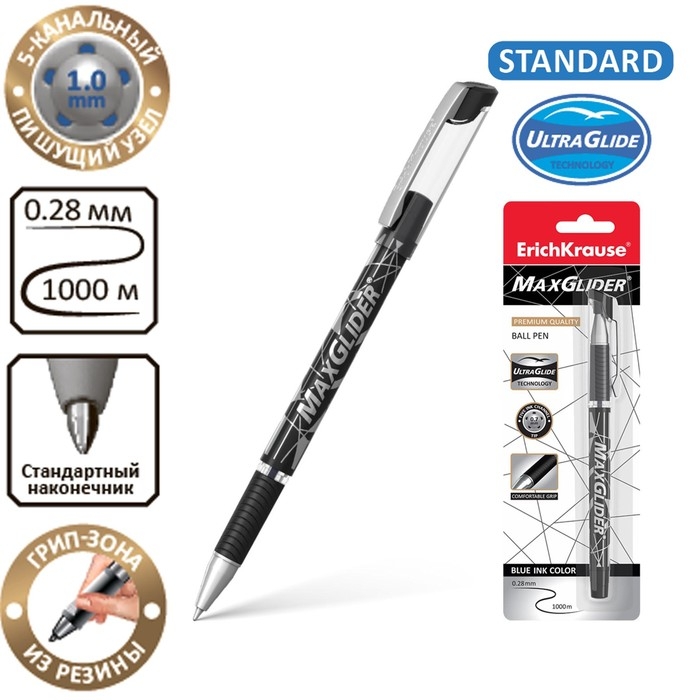 Ручка шариковая ErichKrause MaxGlider Ultra Glide суперкомфортное письмо, чёрная, блистер