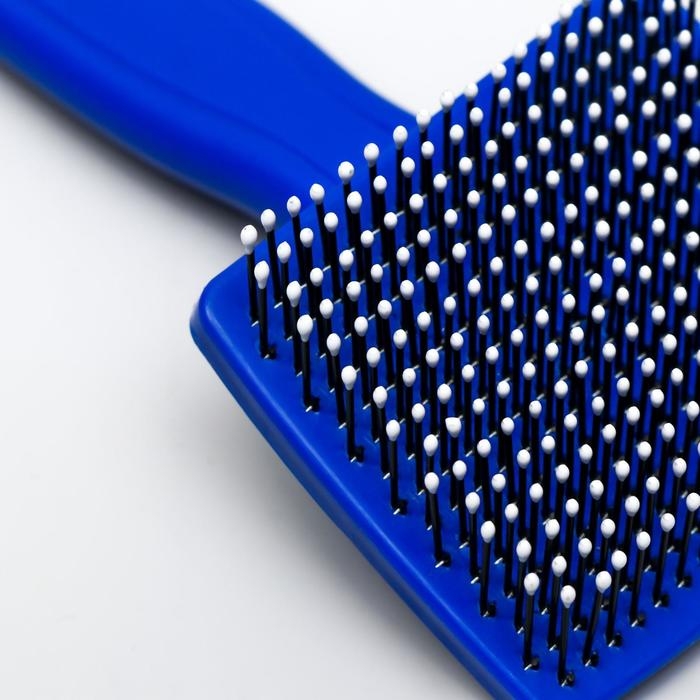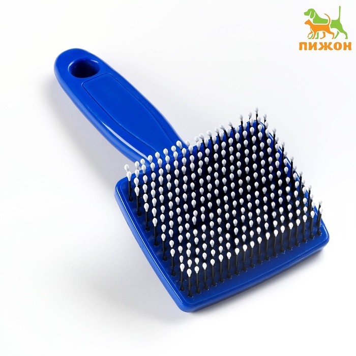 Пуходерка пластиковая мягкая с закругленными зубьями, малая, 6 х 13,5 см, синяя
