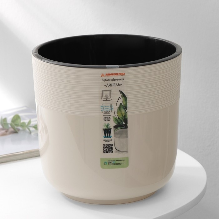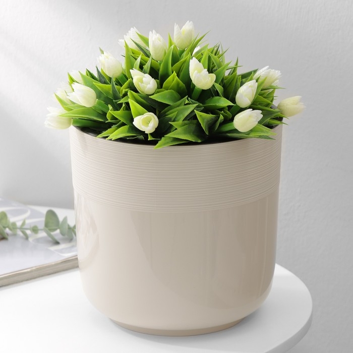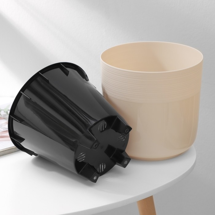 Кашпо для цветов со вставкой «Линель», 4,5 л, d=19 см, h=19 см, бежевое