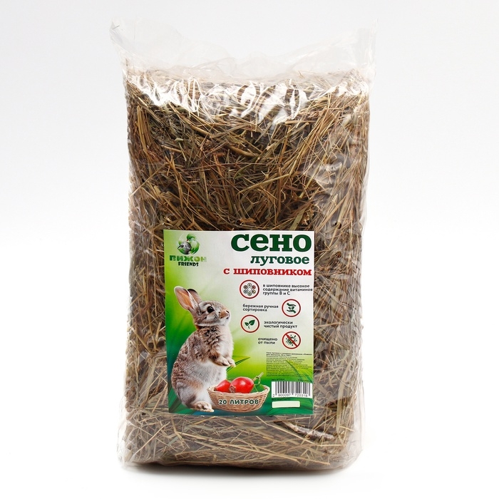 Ароматное луговое сено с плодами шиповника для грызунов из 100% натуральных трав. Используется в качестве подстилки для грызунов: морских свинок, кроликов и шиншилл. Сено хорошо впитывает влагу и маскирует неприятные запахи.