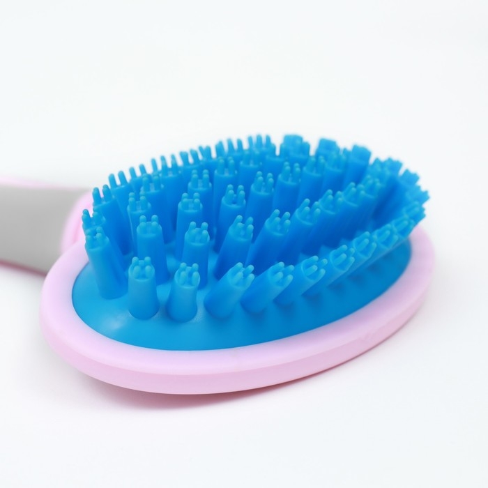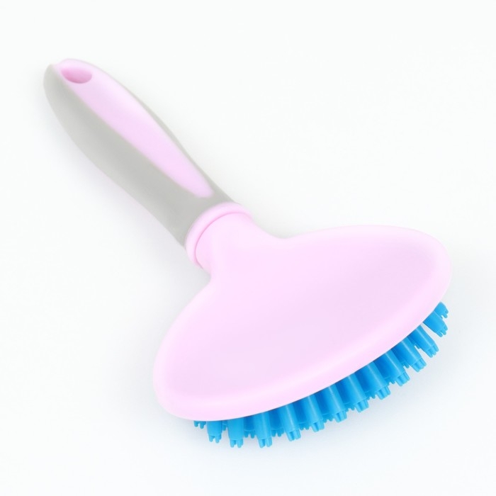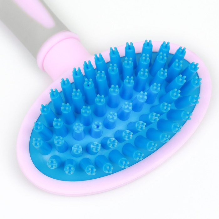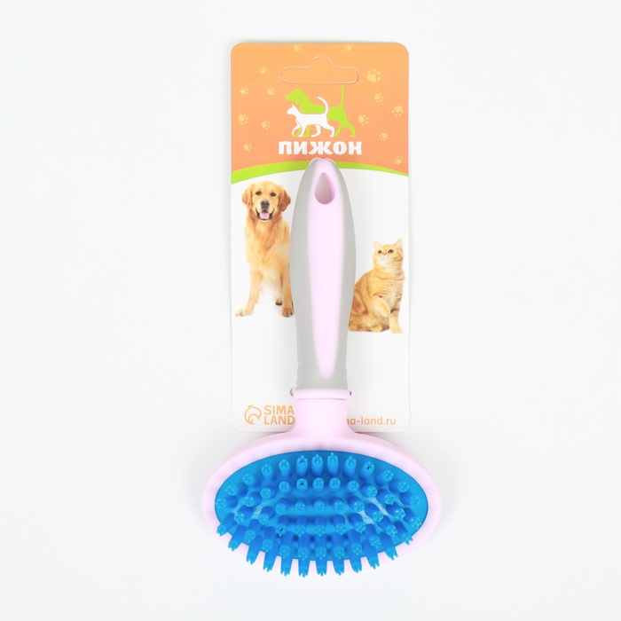 Щетка-массажер для животных с силиконовыми зубьями, средняя, 9,5 х 16,5 см, розовая