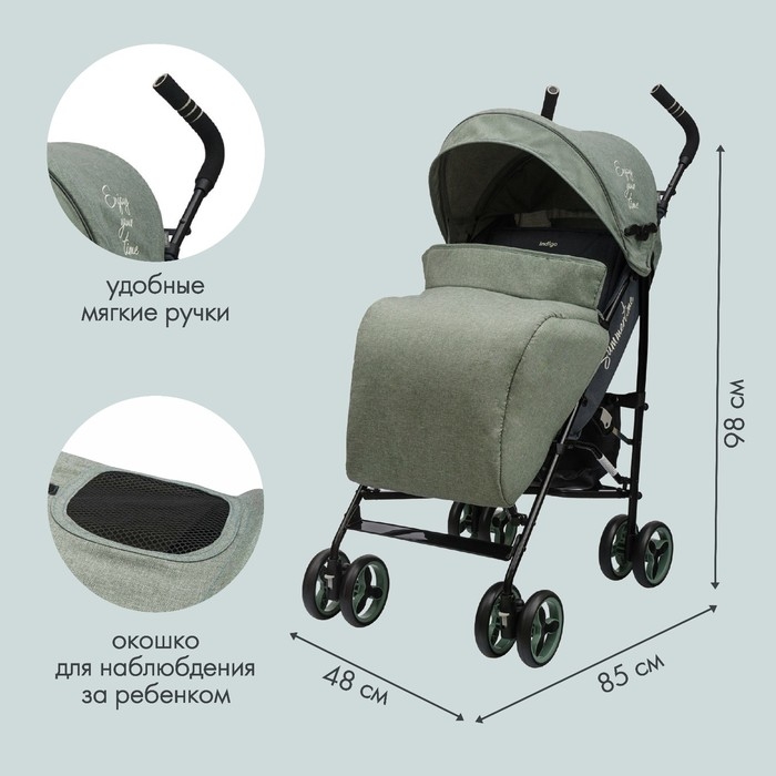 Коляска прогулочная детская Indigo PUNTO, складывается в трость, цвет оливковый