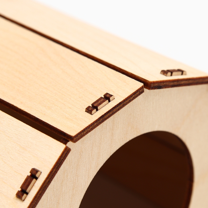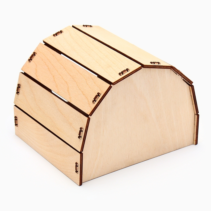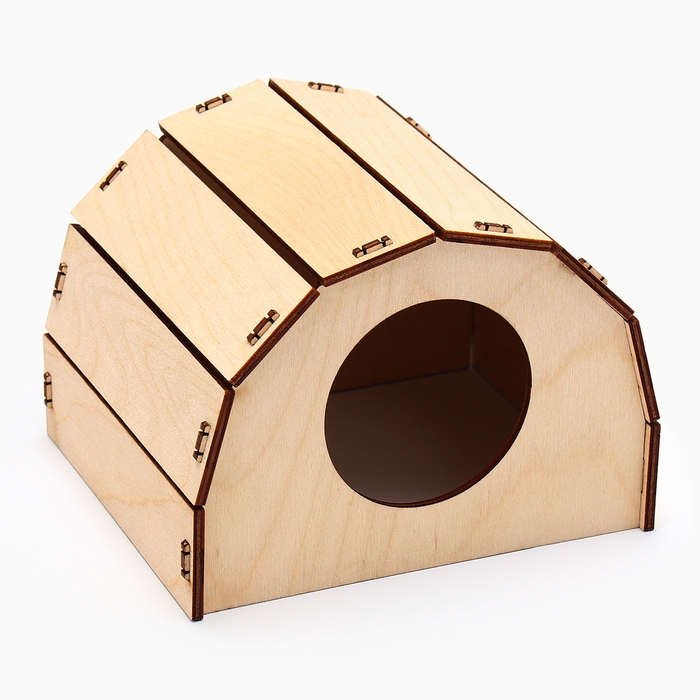 Домик для грызунов изготовлен из фанеры высшего сорта с ошкуренными краями без окрашивания.