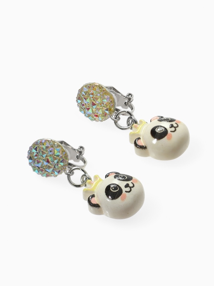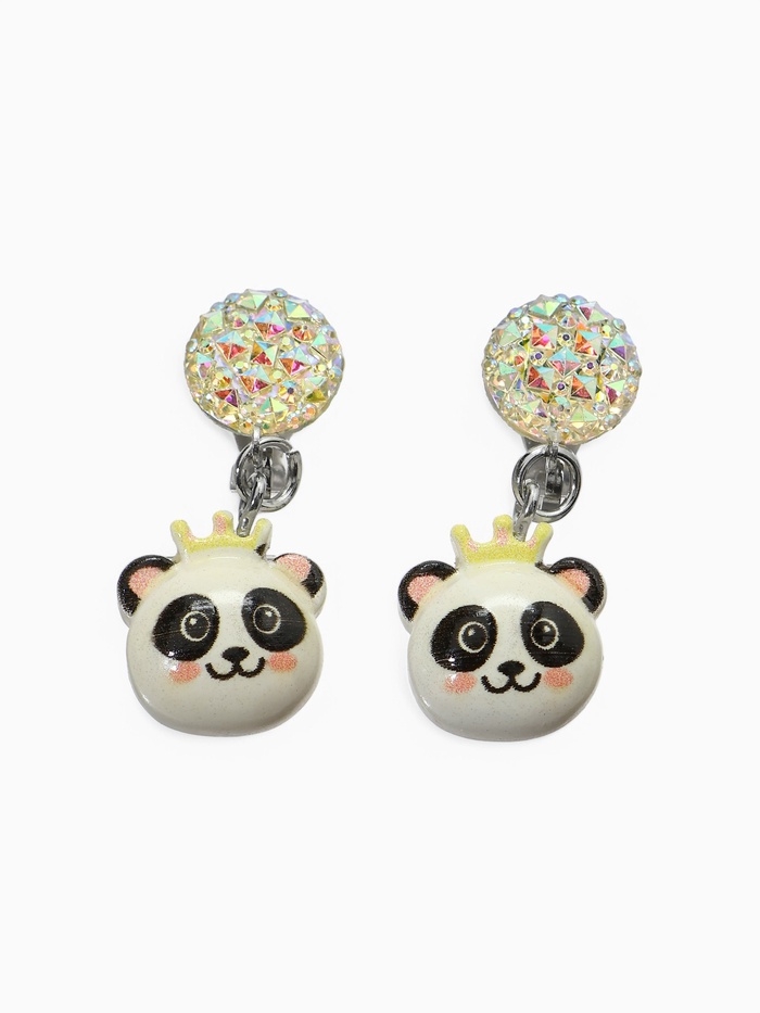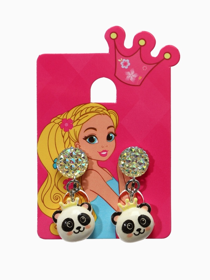 Серьги-клипсы детские "Выбражулька" панда с короной с кругом кристалл, цветные