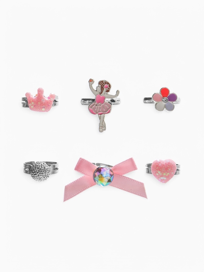 Кольца детские "Выбражулька" набор 6шт,балерина ассорти форма, цвет МИКС, б-р