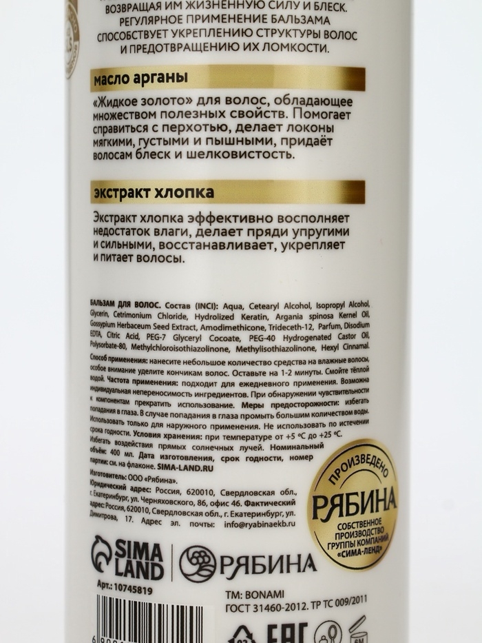 Бальзам для волос "Сила и укрепление", 400 мл