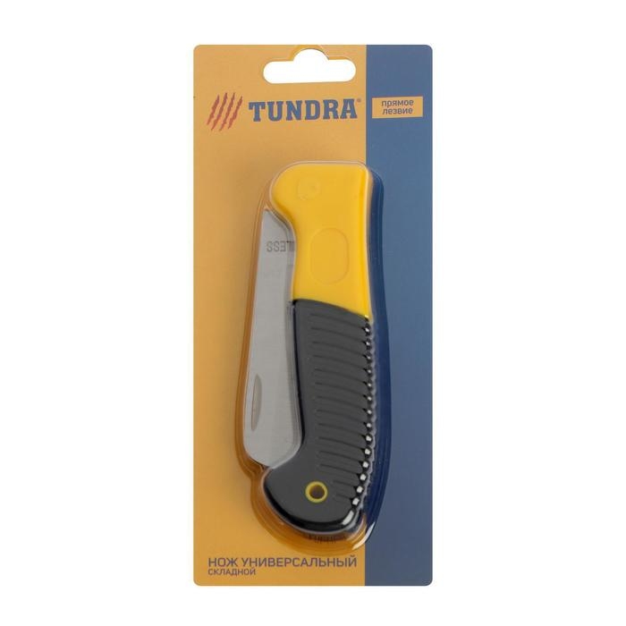 Нож универсальный складной ТУНДРА, 2К рукоятка, прямое лезвие, нержавеющая сталь