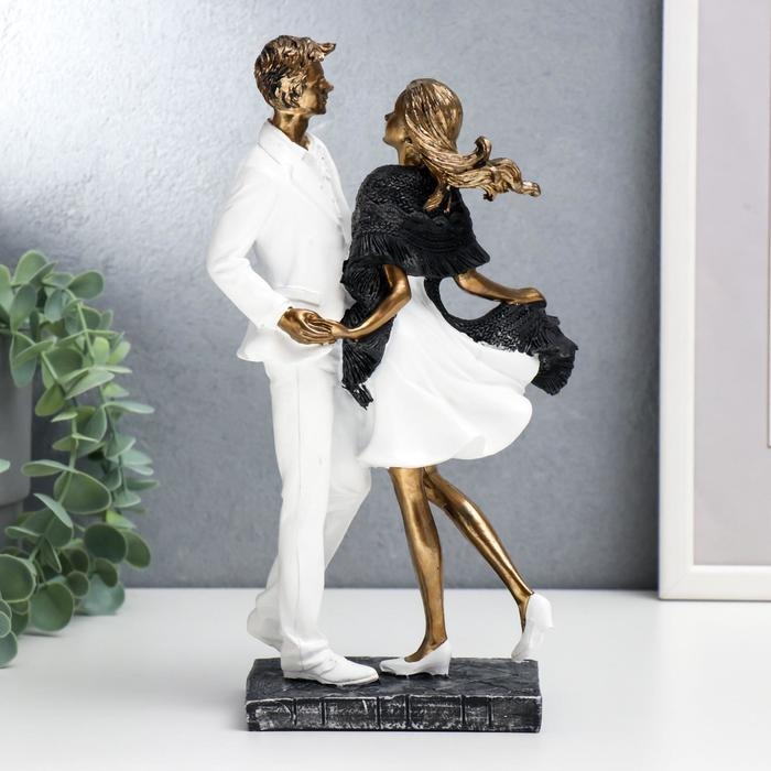Сувенир полистоун "Влюблённые в белой одежде, с палантином" 25х10х13 см