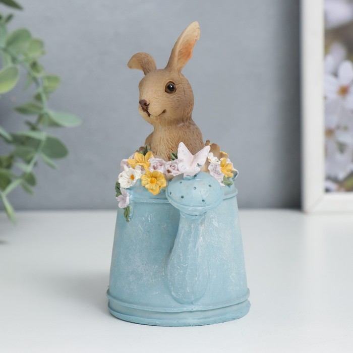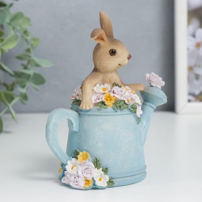 Сувенир полистоун "Крольчонок в леечкой с цветами" 13х6,5х11,5 см