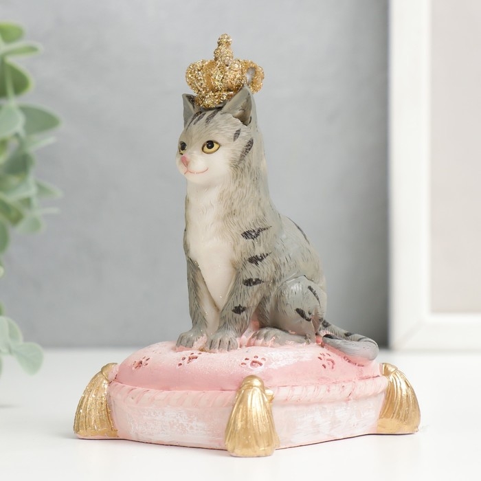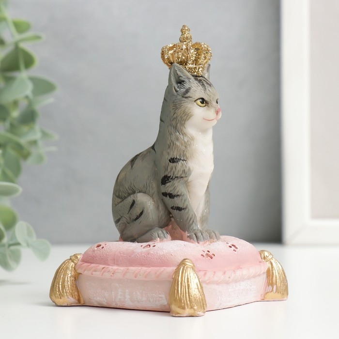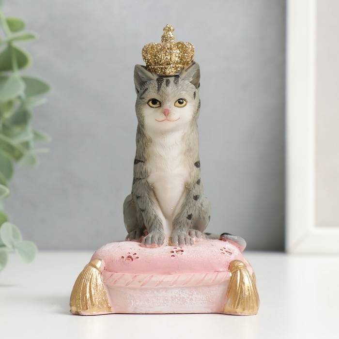 Сувенир полистоун "Кот-император на подушке" 10х6,5х7 см