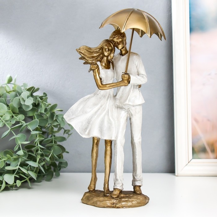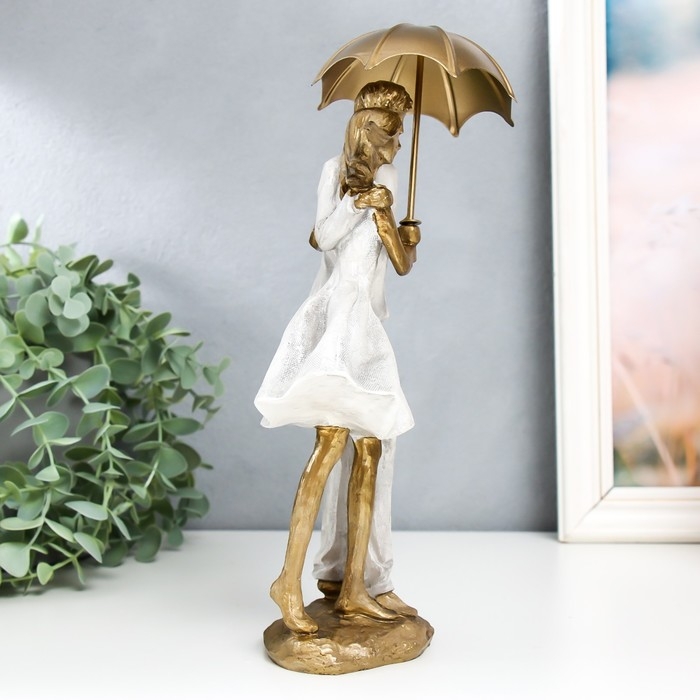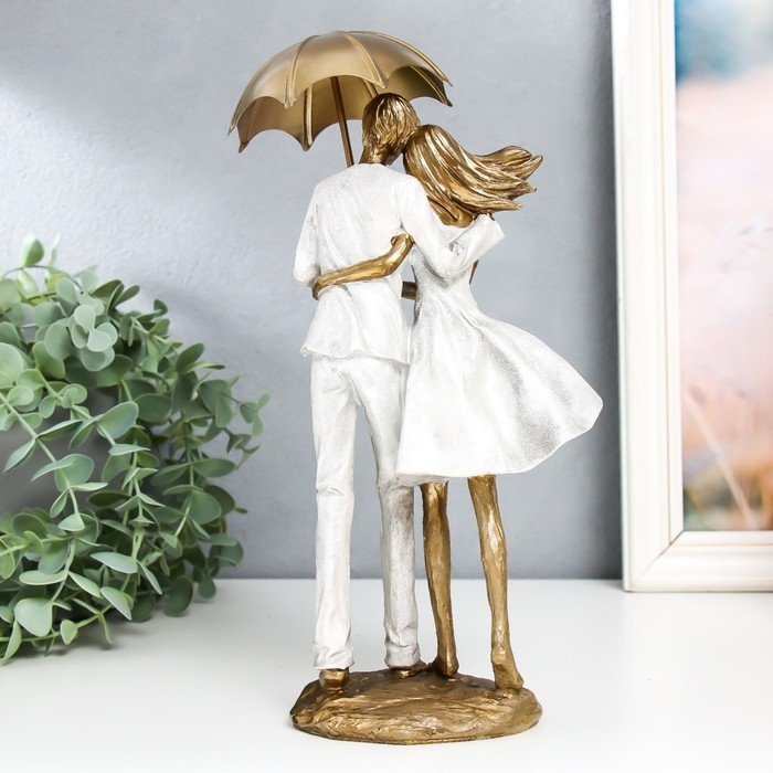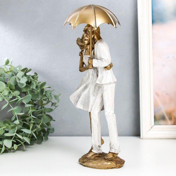 Сувенир полистоун "Влюблённая пара под зонтом на ветру" 8х12,5х25,5 см