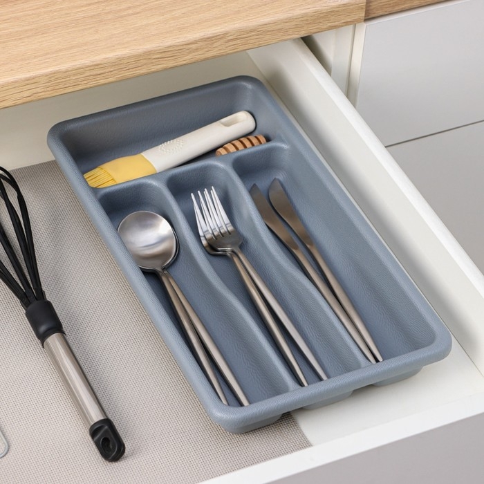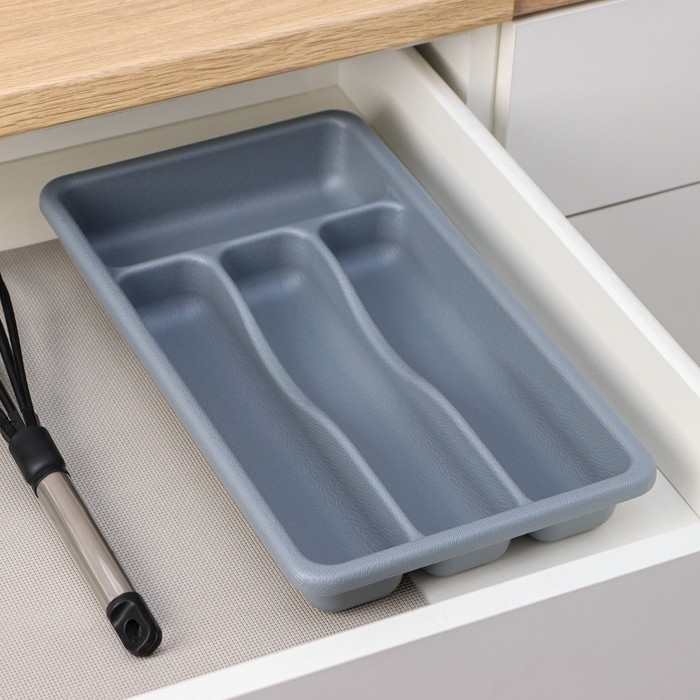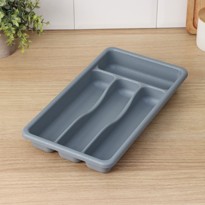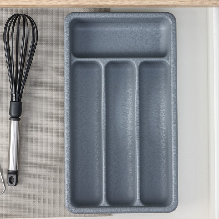 Лоток для столовых приборов, 36×20×5 см, 4 отделения, цвет серый