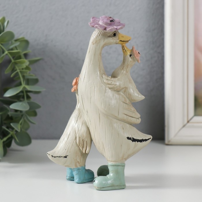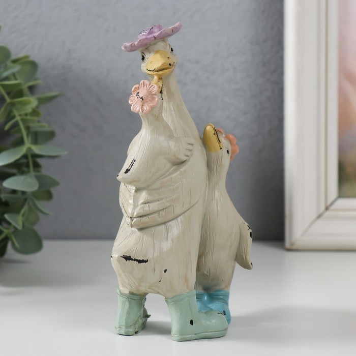 Сувенир полистоун "Гусыня с детками" 9х5,5х14,5 см