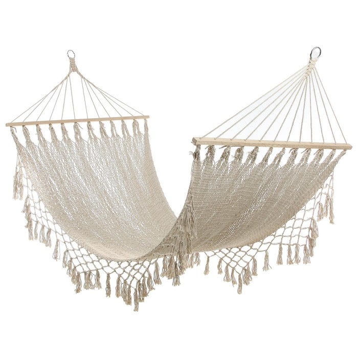 Универсальный гамак можно установить на свежем воздухе и провести время с комфортом. Выполнен из хлопковых ниток. Гамак можно подвешивать на крючки в стенах, стволы деревьев, столбы и специальную подставку. Максимально допустимая нагрузка 80 кг.