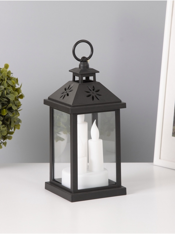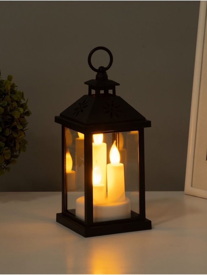 Светодиодная свеча в подсвечнике RISALUX «Дом со свечами», LED-ночник, 1.5 Вт, 3×ААА, 11×18×30 см