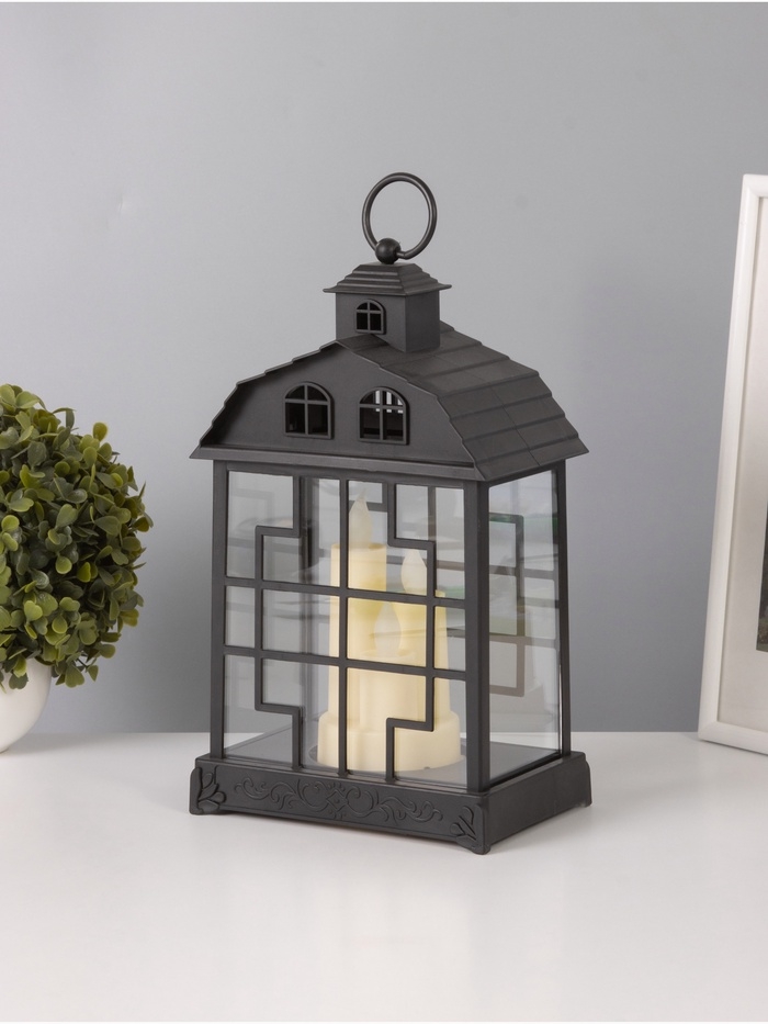 Светодиодная свеча в подсвечнике RISALUX «Дом со свечами», LED-ночник, 1.5 Вт, 3×ААА, 11×18×30 см