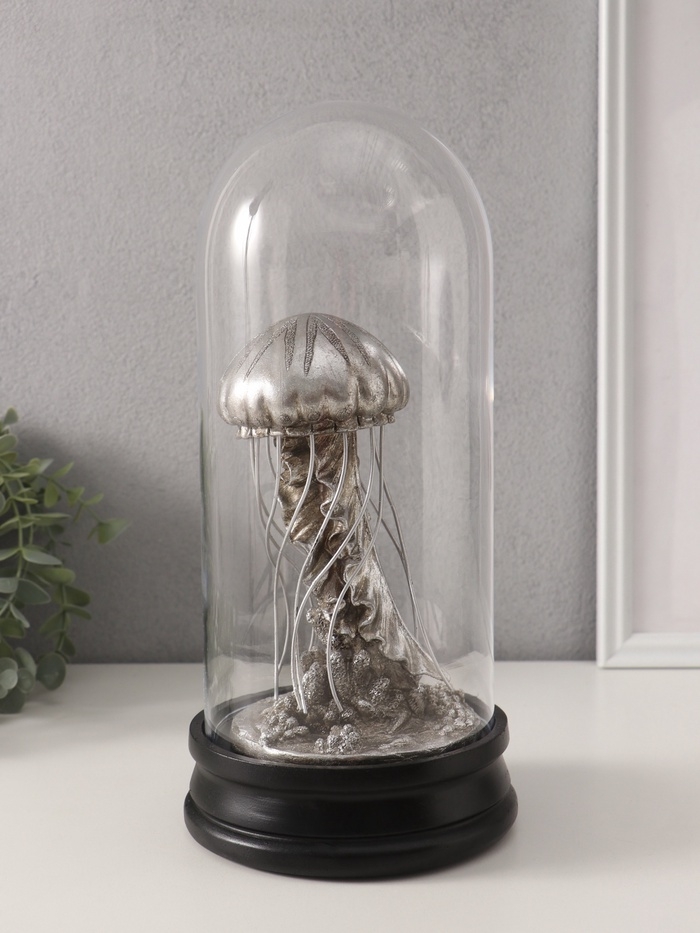 Сувенир полистоун в колбе "Медуза" серебро 14х14х30 см