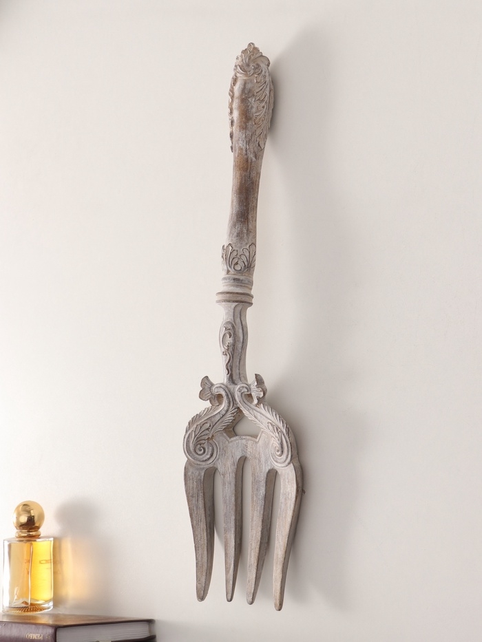 Панно интерьерное полистоун "Винтажная вилка" белая патина 11х46х4,5 см