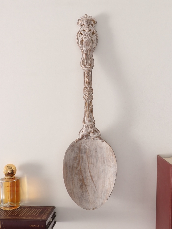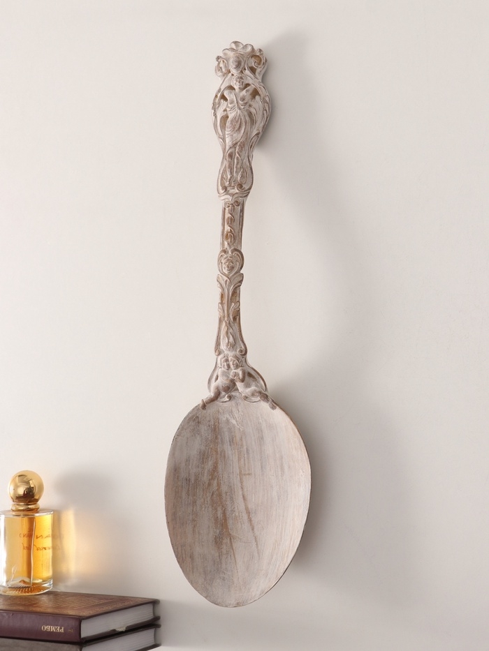 Панно интерьерное полистоун "Винтажная ложка" белая патина 12х43,5х5 см