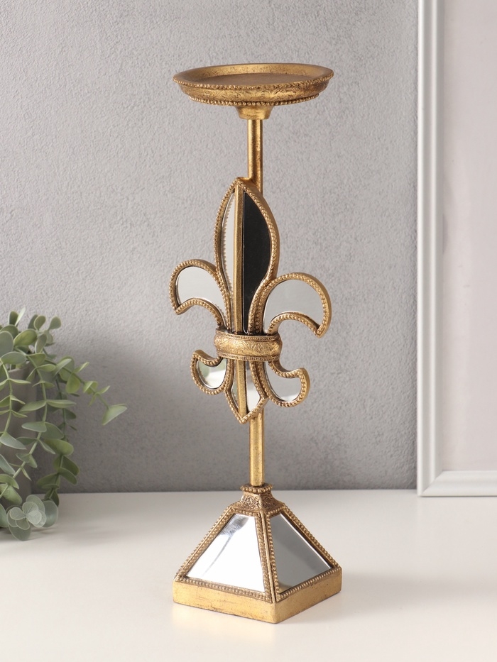 Подсвечник полистоун на 1 свечу "Зеркальная геральдическая лилия" 14х11х38,5 см