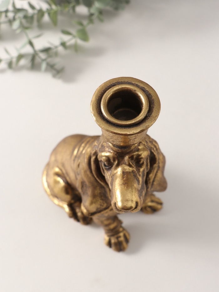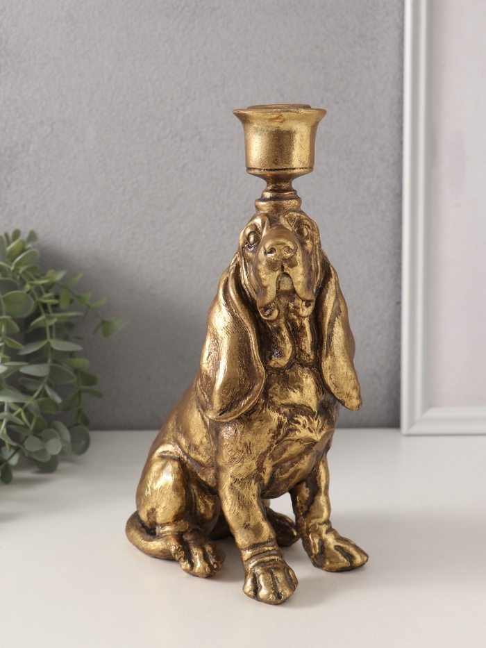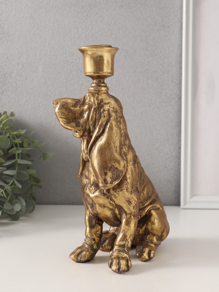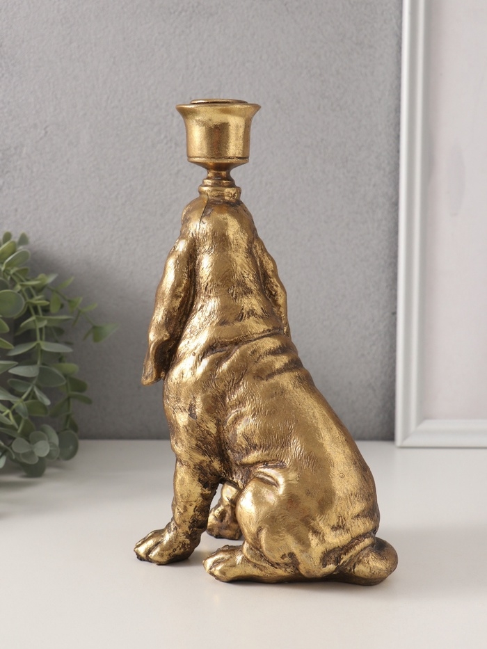 Подсвечник полистоун на 1 свечу "Спаниель" золото 14,5х9х24 см