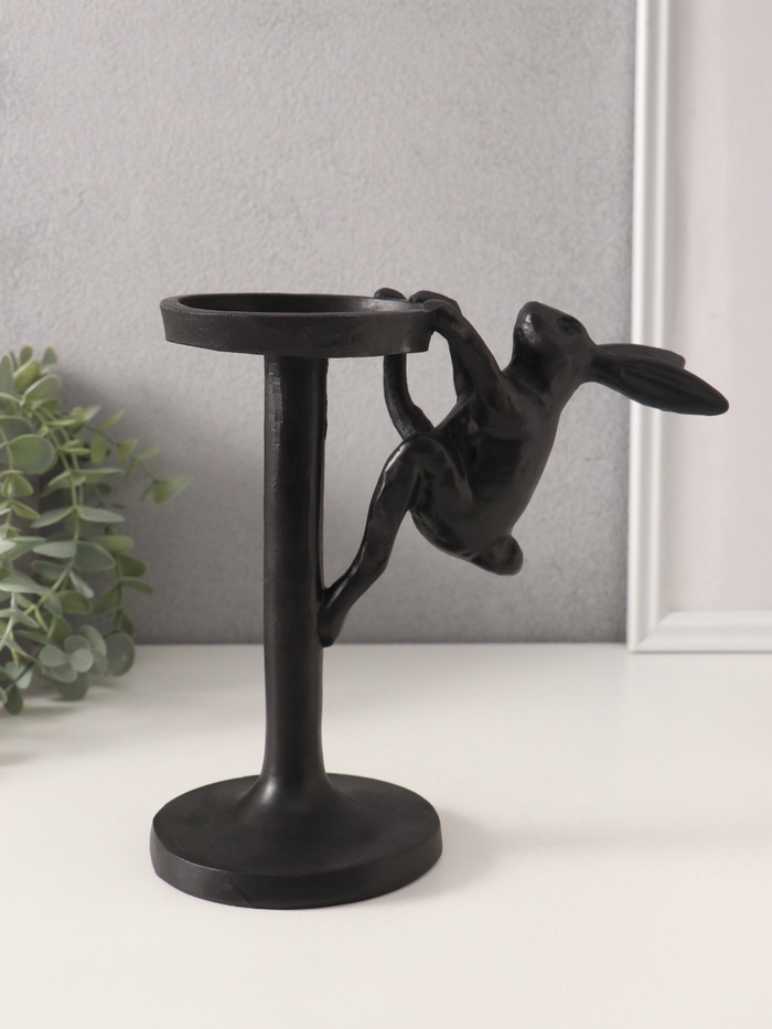 Подсвечник полистоун на 1 свечу "Мартовский заяц" чёрный 20х10,5х19,5 см