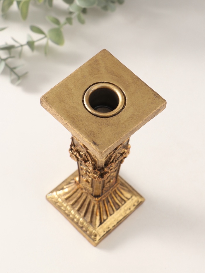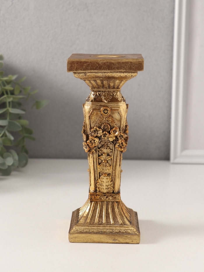 Подсвечник полистоун на 1 свечу "Римская колонна с цветами" состаренное золото 7х7х17 см
