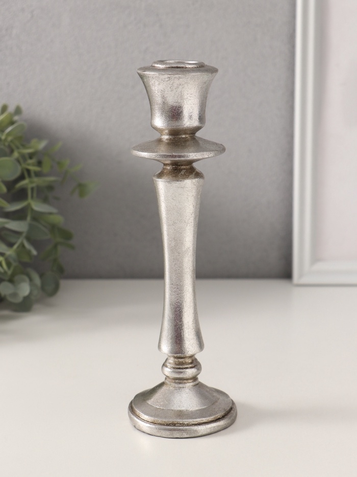 Подсвечник полистоун на 1 свечу "Медичи" серебро 6,5х6,5х20,5 см
