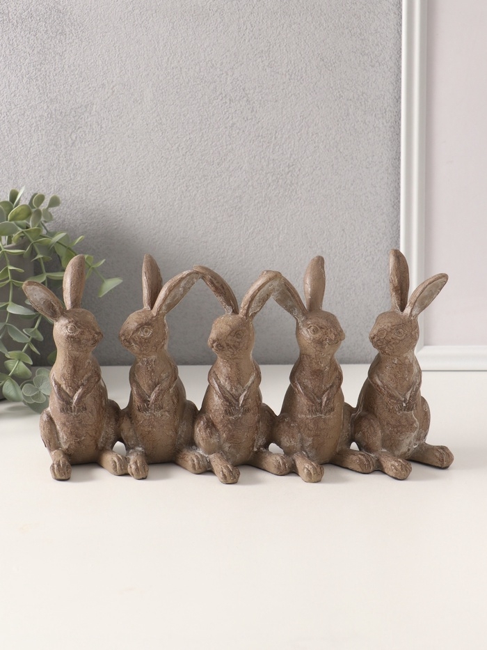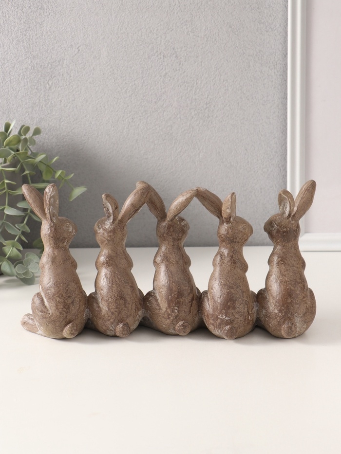Сувенир полистоун "Пять зайцев" тёмное серебро 29,8х8,5х15,3 см