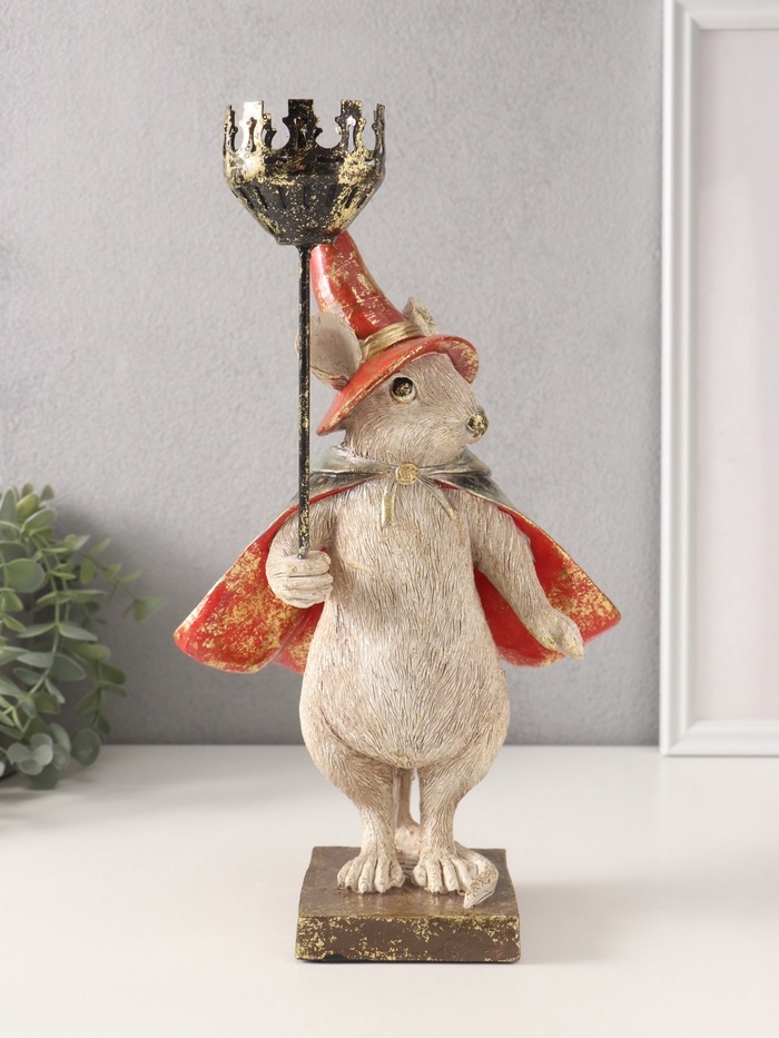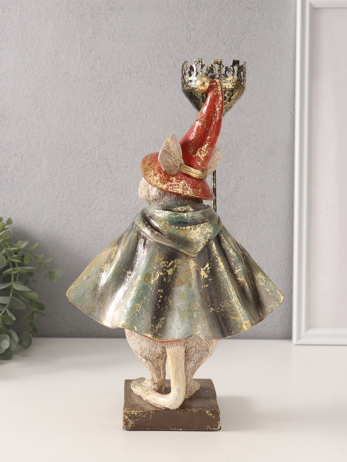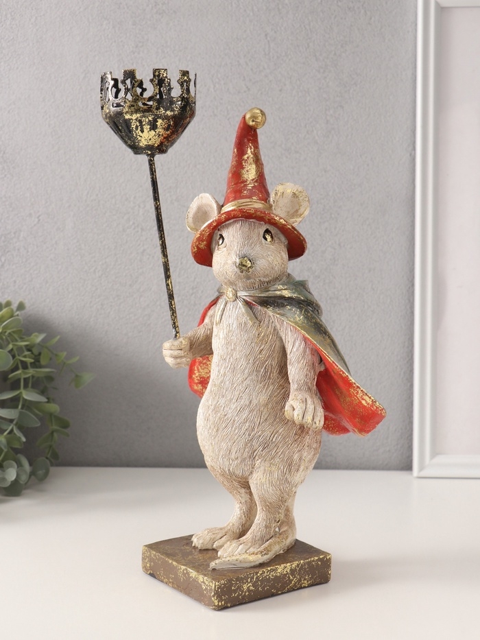 Сувенир полистоун подсвечник "Мышонок-волшебник" 16х18,5х32 см