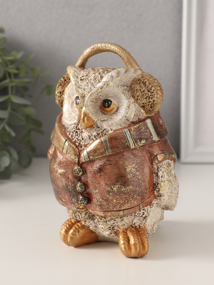 Сувенир полистоун "Сова в куртке и наушниках" 11х11х16,5 см