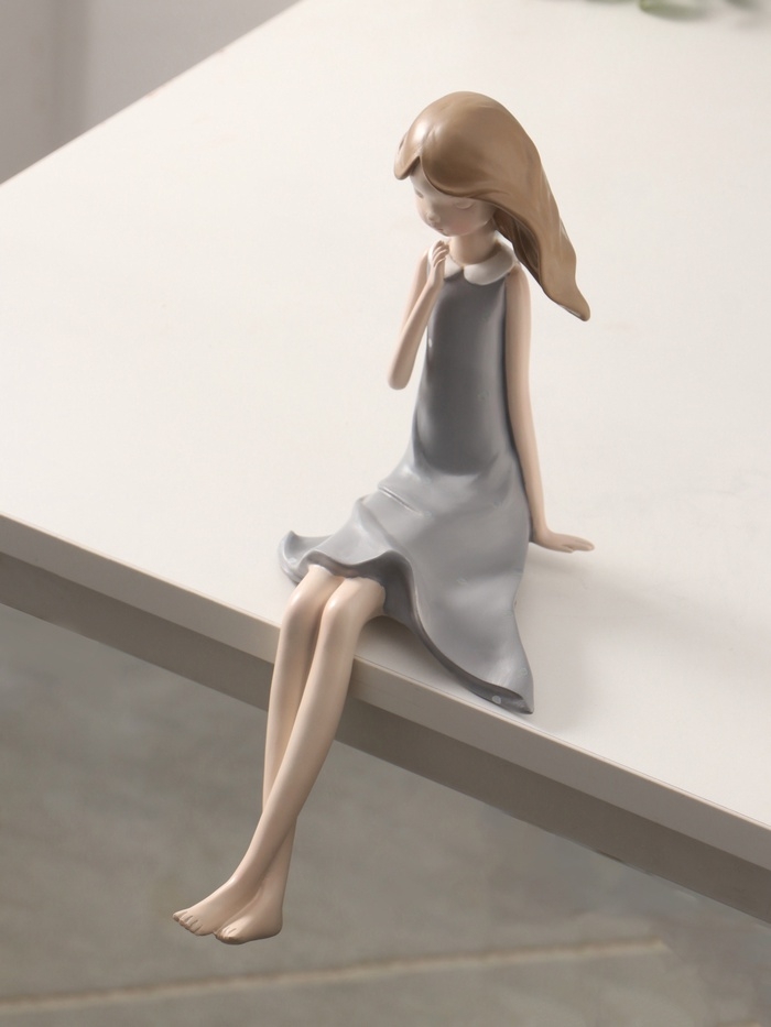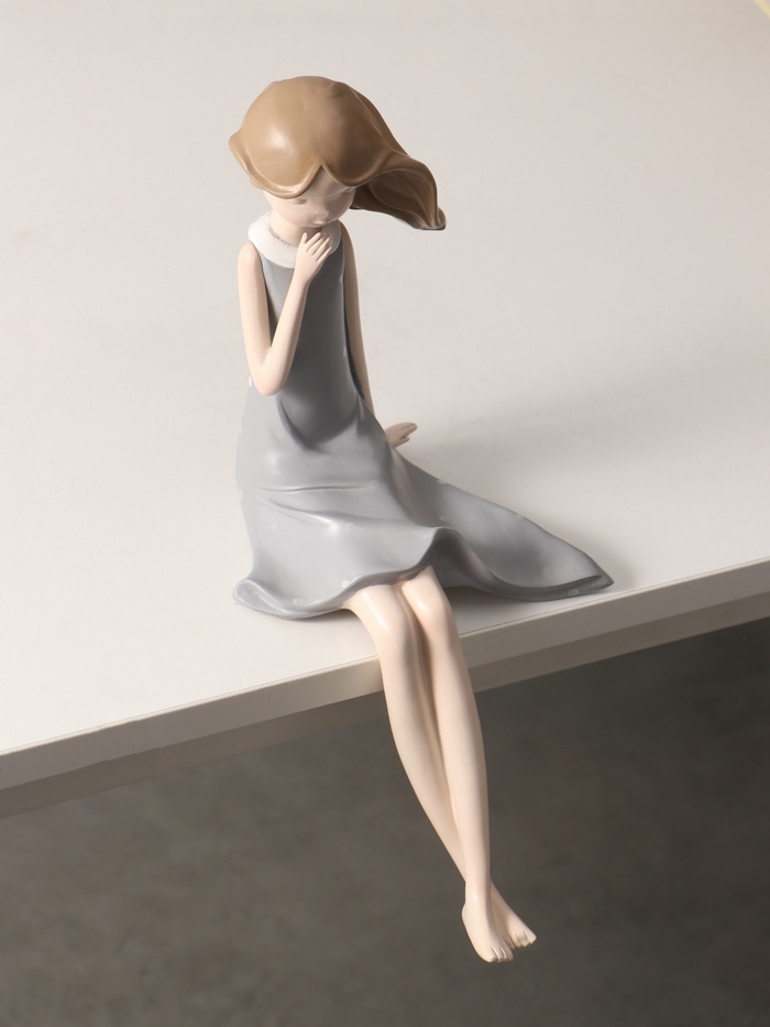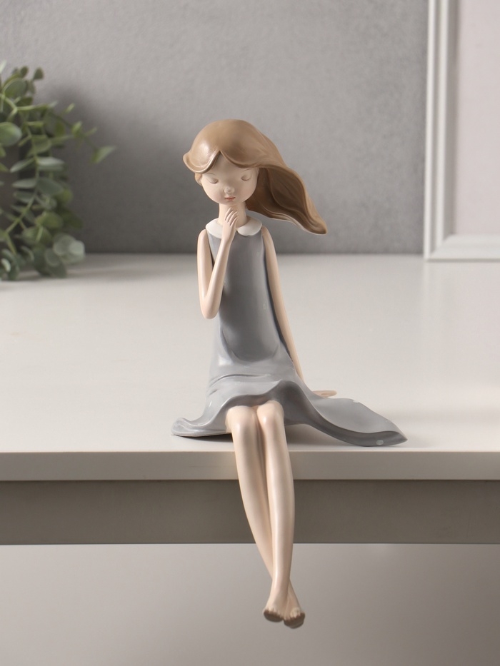 Сувенир полистоун "Малышка в сером платье в горошек" 14х19х30 см