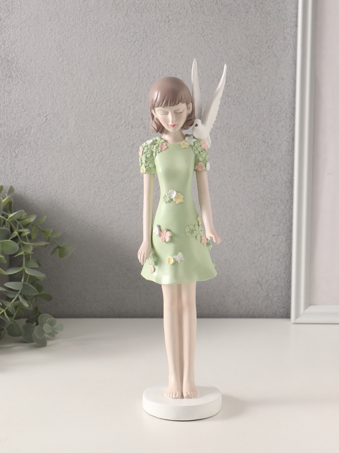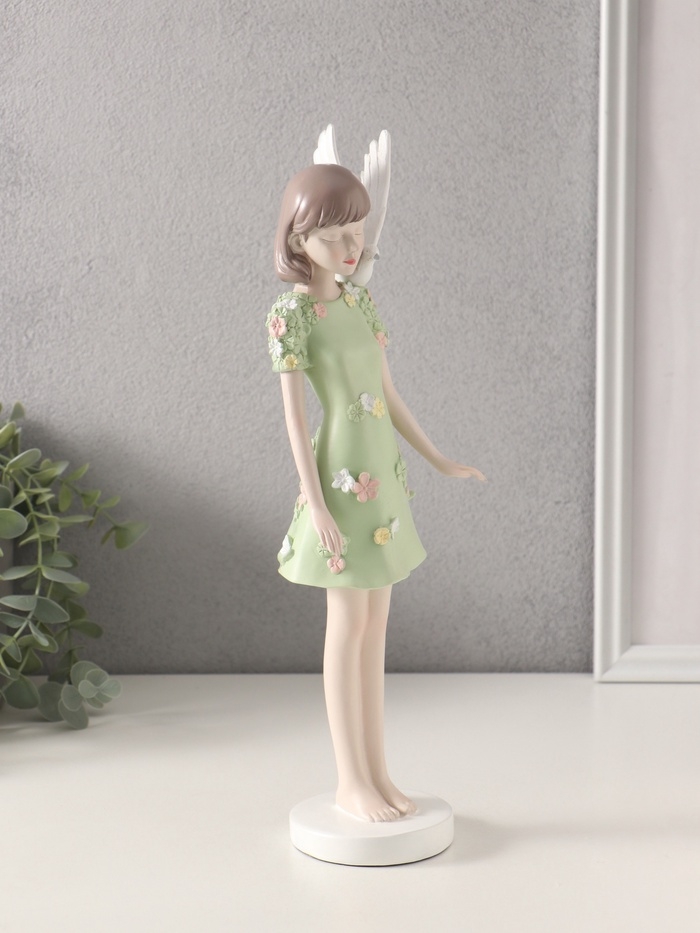 Сувенир полистоун "Девочка с белым голубем на плече" 11х9,5х32,5 см