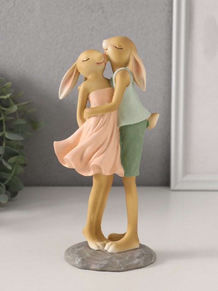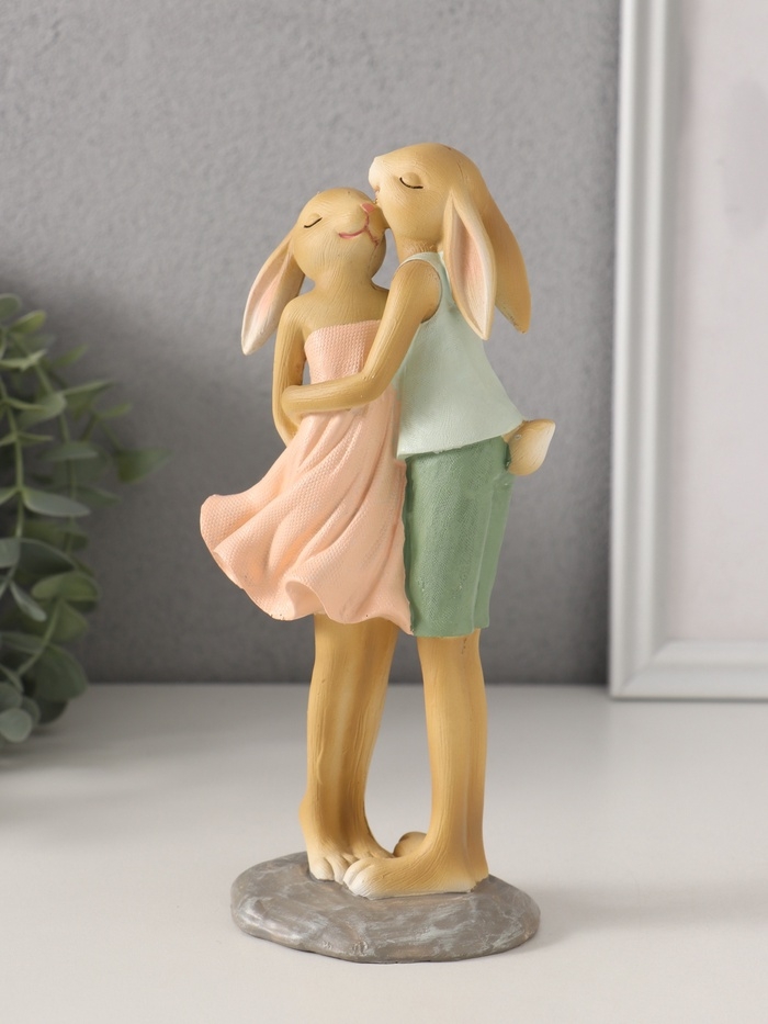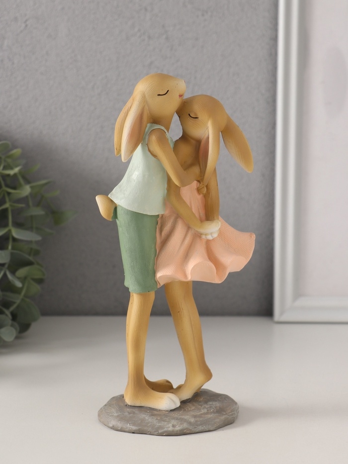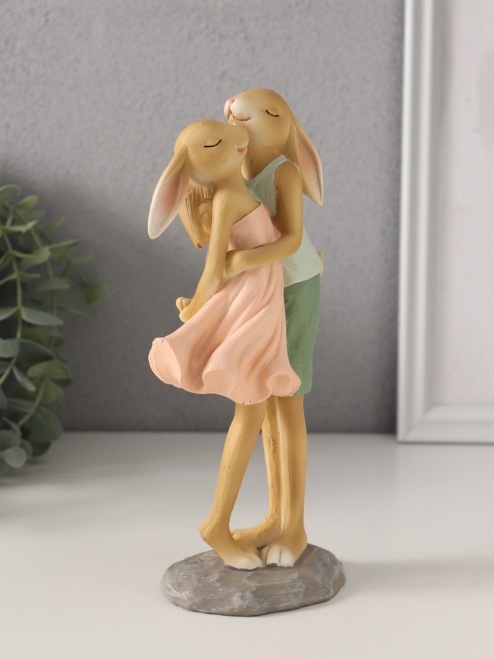Сувенир полистоун "Романтика. Кролики - нежный поцелуй" 9х6,5х20 см