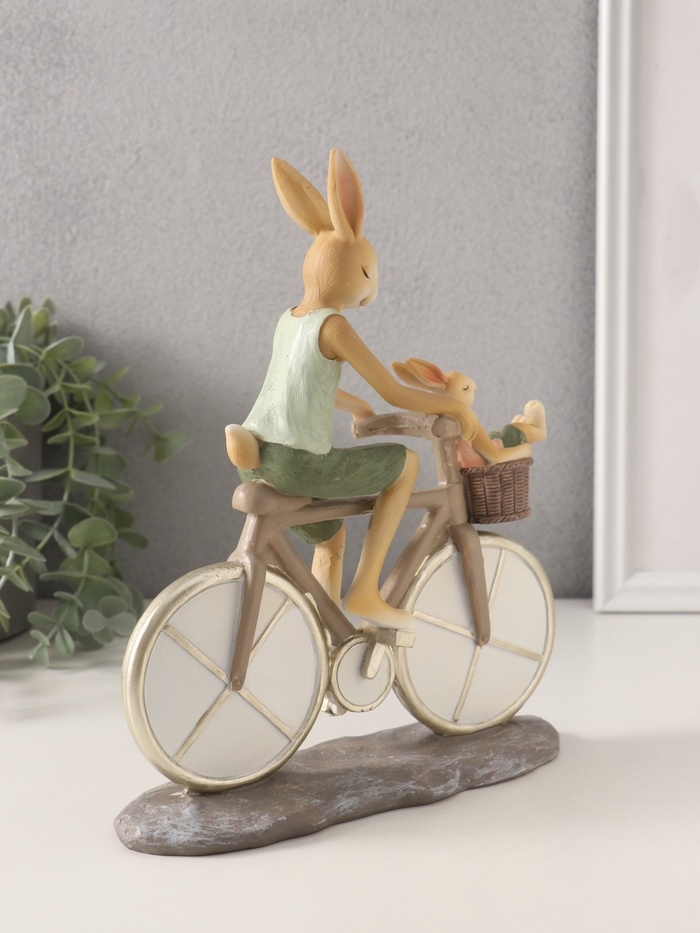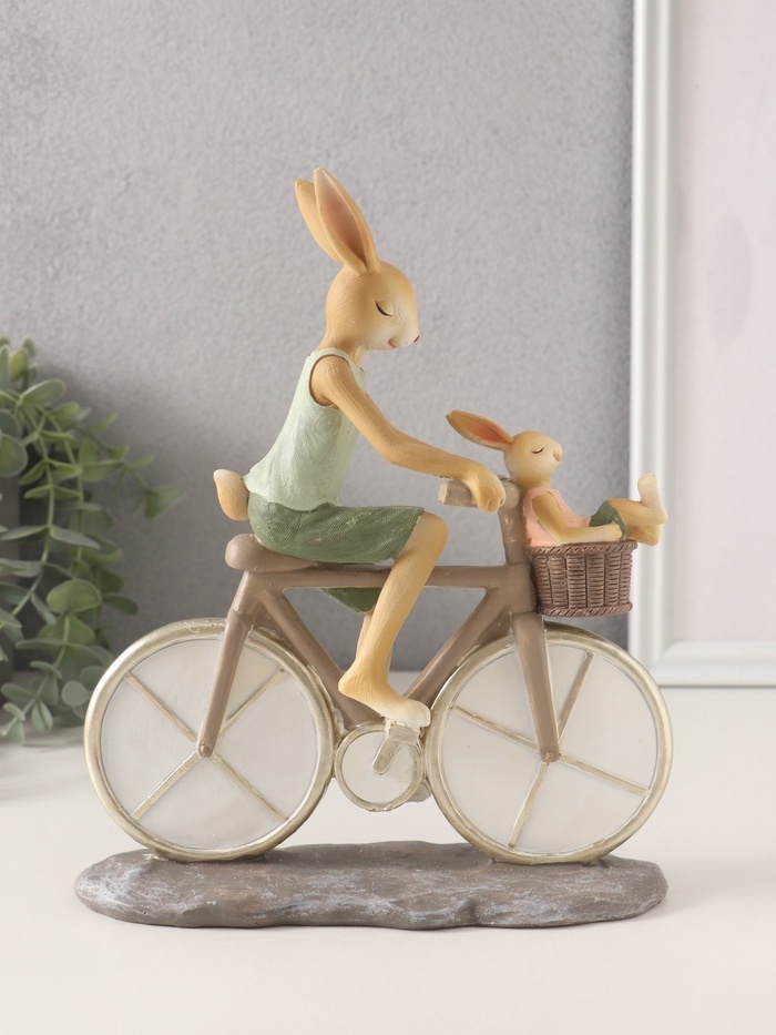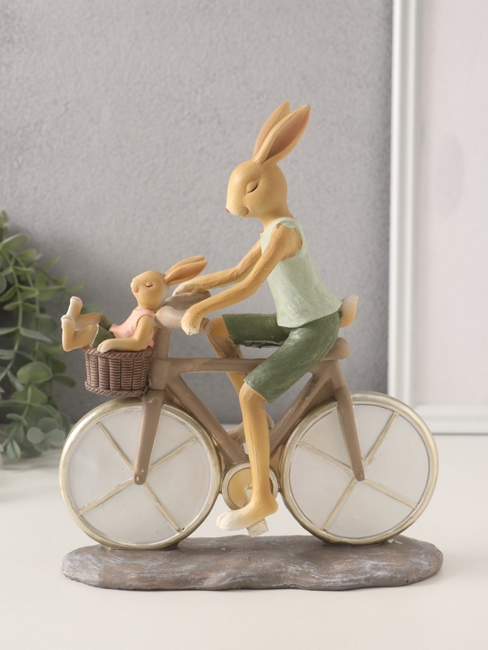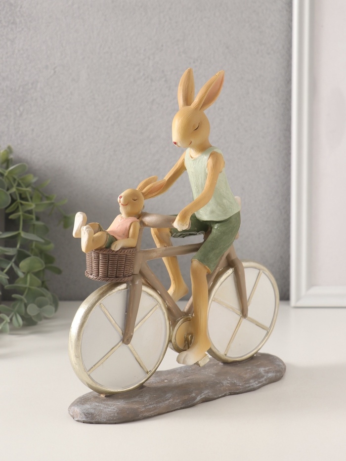 Сувенир полистоун "Зайки. Папа с сыном на велосипеде" 18х7,5х22 см