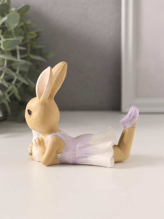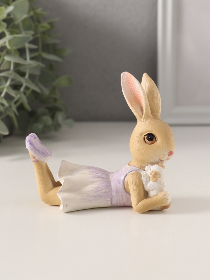 Сувенир полистоун "Зайка в сиреневом сарафане с щеночком" 10х5,5х9 см
