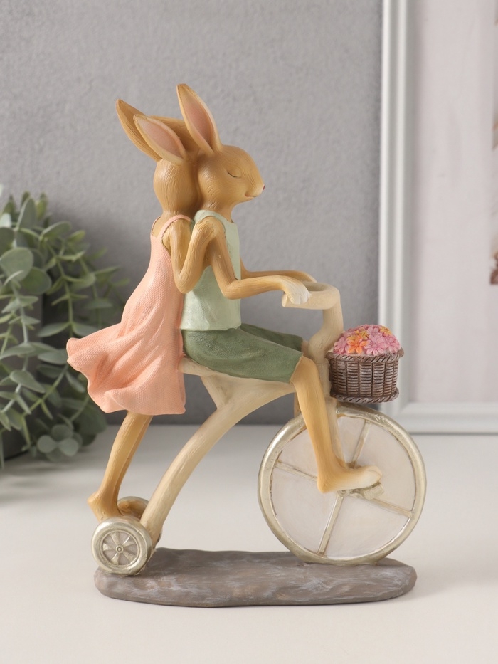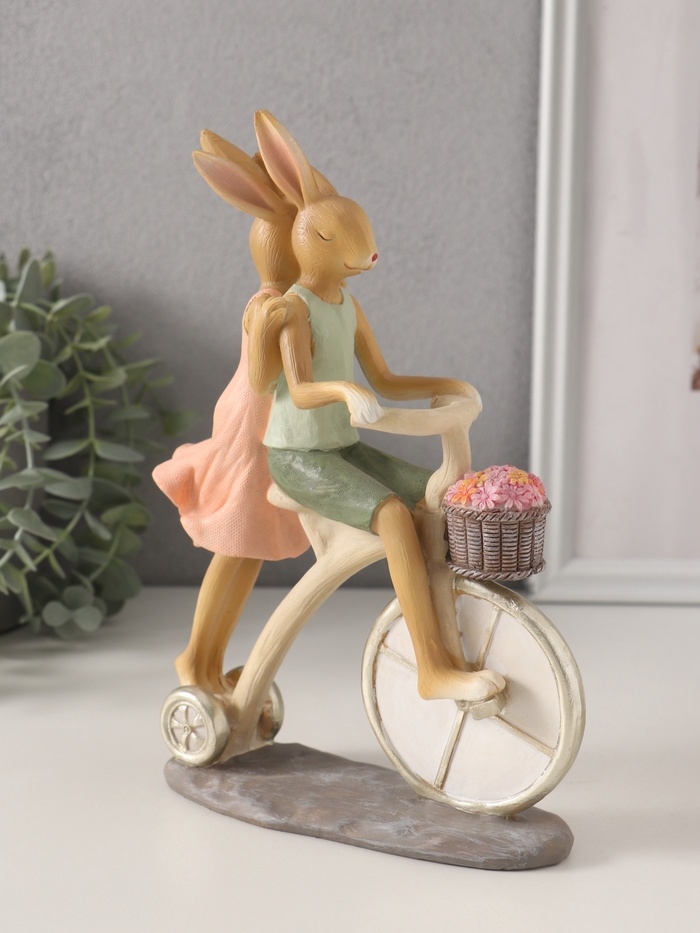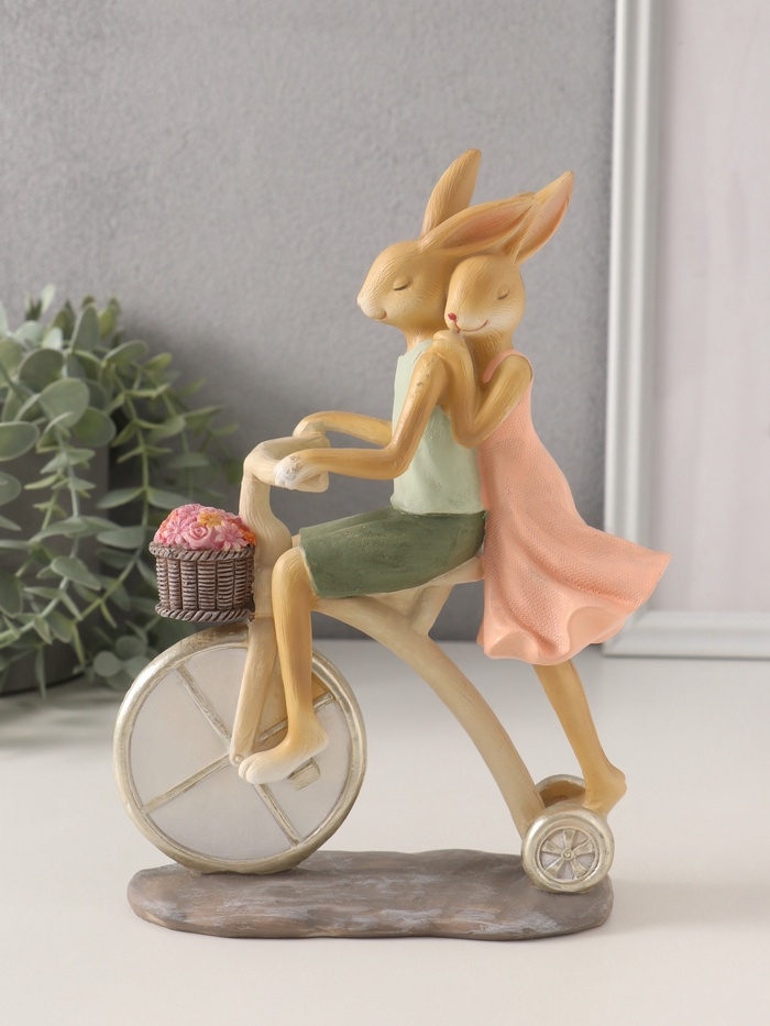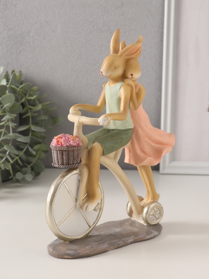 Сувенир полистоун "Романтика. Кролики - катание на велосипеде" 16х6,5х22,5 см